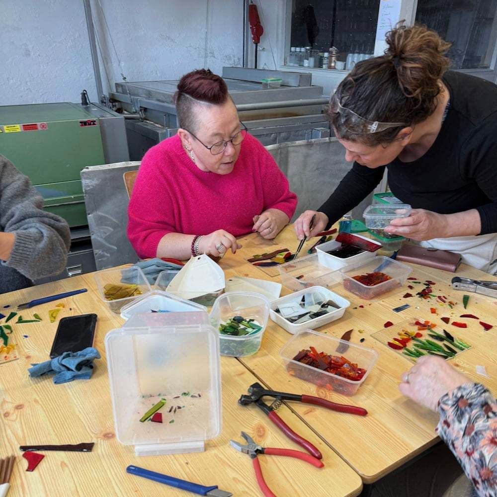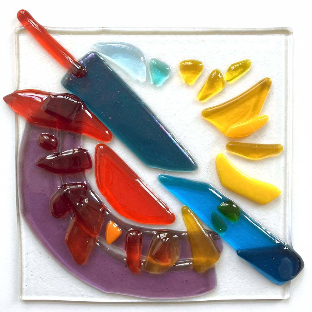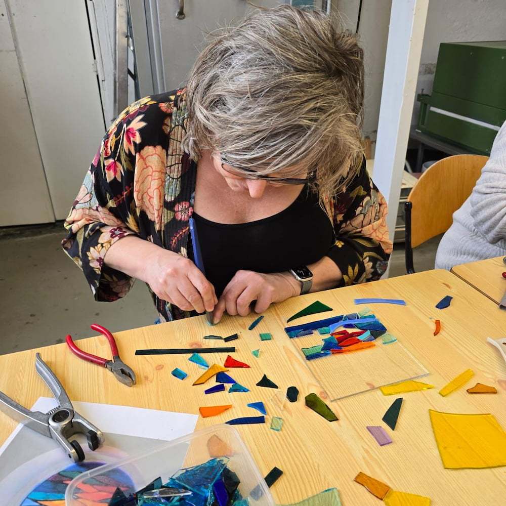 Je leert de basis van glas snijden. Daarna maak je een eigen werk in glas. Je werkt op een ovenplaat, waardoor je een vrije vorm kunt maken en met kleuren op elkaar kunt werken.