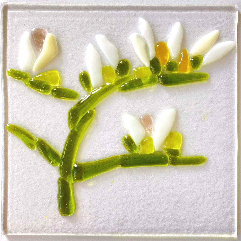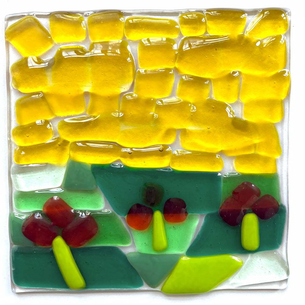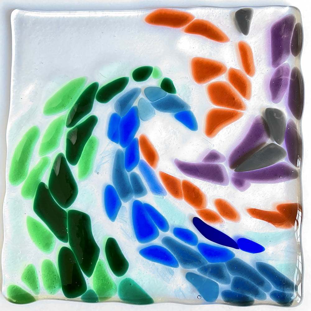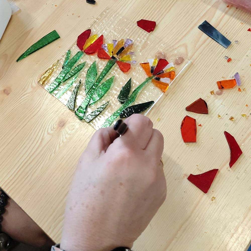 Je leert de basis van glas snijden. Daarna maak je een eigen werk in glas. Je werkt op een ovenplaat, waardoor je een vrije vorm kunt maken en met kleuren op elkaar kunt werken.