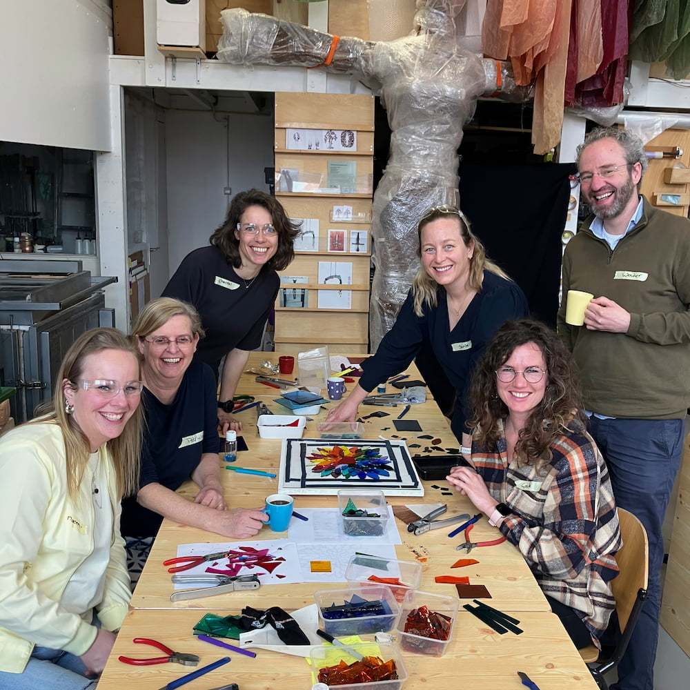 Maak samen met je team een glaswerk dat iets verbeeldt van jullie bedrijf, team of afdeling. Jullie starten met een gezamenlijke brainstorm en werken ideeën uit tot een ontwerp op papier. Daarna ga je aan de slag met glas snijden, glas breken en het samenstellen van het werk.