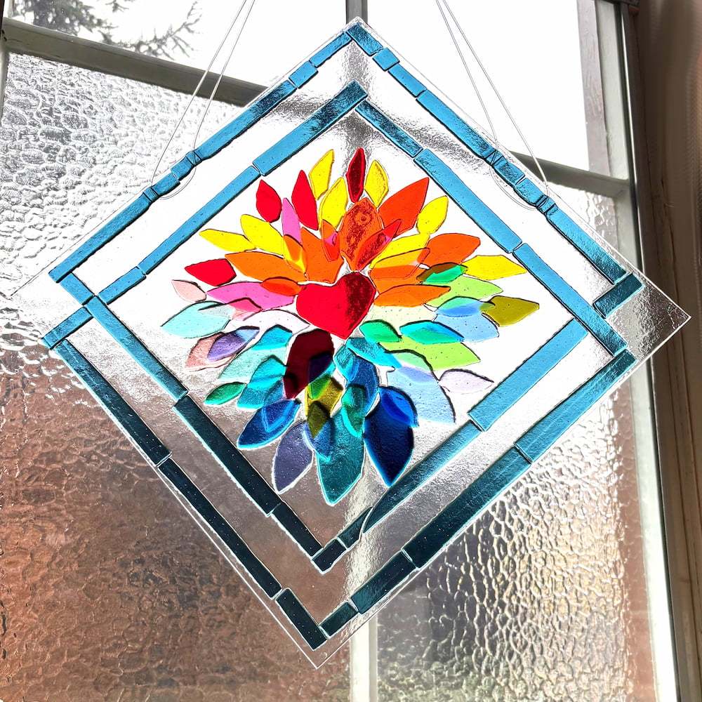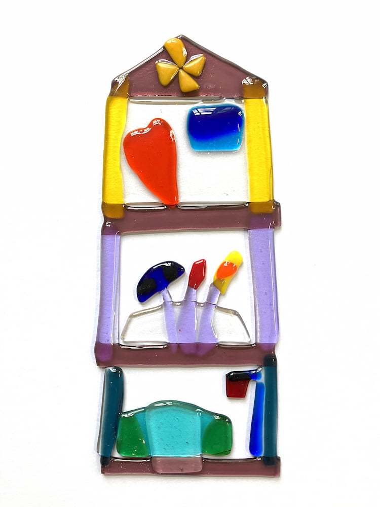 Een glaswerk van maximaal 14 x 30 cm of 18 x 18 cm. De werken worden gesmolten in een oven op 720-780 graden. Binnen 1 á 2 weken kan het worden opgehaald. Alles is dan ingepakt en van naam voorzien.