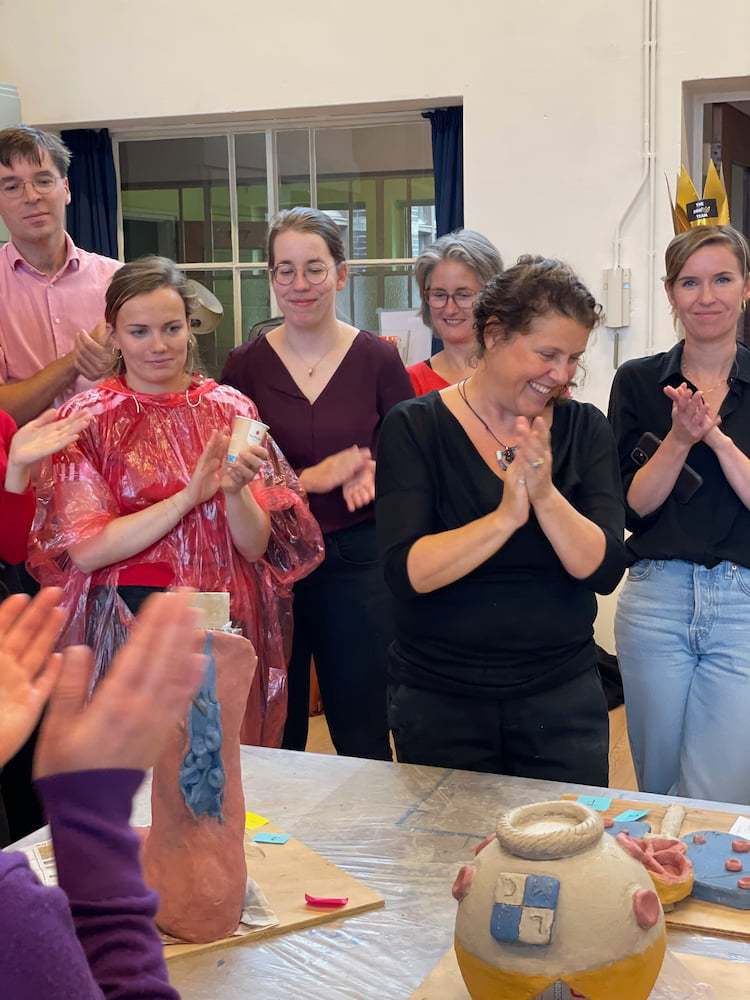 Maak samen met je team een keramisch werk dat iets verbeeldt van jullie bedrijf, team of afdeling. Je werkt in groepjes van 3 tot 6 personen. Eerst maak je kennis met de basistechnieken van het werken met klei. Daarna ga je met jouw groep brainstormen en werken jullie een ontwerp en plan van aanpak uit. Vervolgens gaan jullie aan de slag met gekleurde klei. Desgewenst kan er een wedstrijdelement aan de workshop worden toegevoegd.