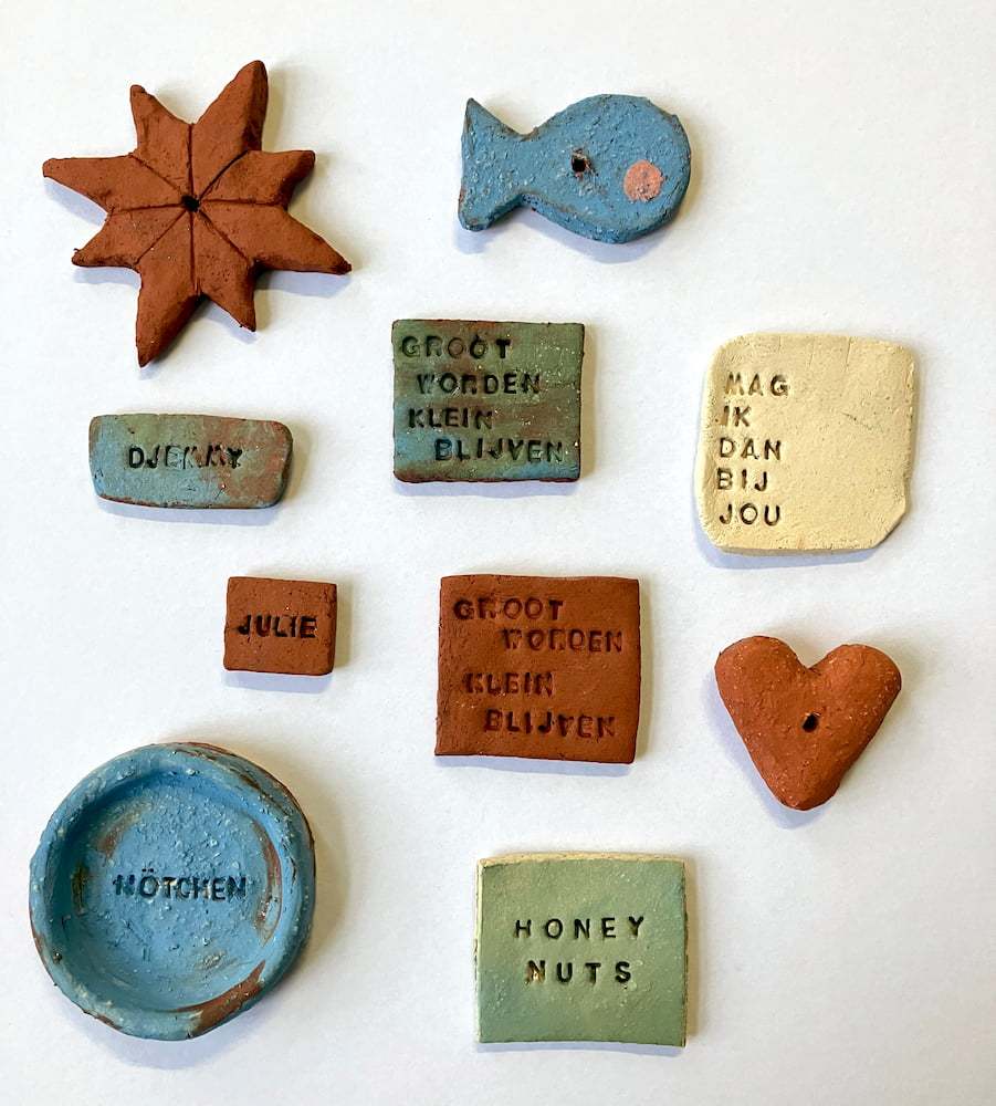 Na de workshop moet het werk eerst drogen en wordt het daarna gebakken. Tegen meerprijs kan het later nog van een glanslaag worden voorzien. De klei is niet bedoeld als gebruiksgoed. Na enkele weken kan het werk worden opgehaald. Alles is dan ingepakt en van naam voorzien.